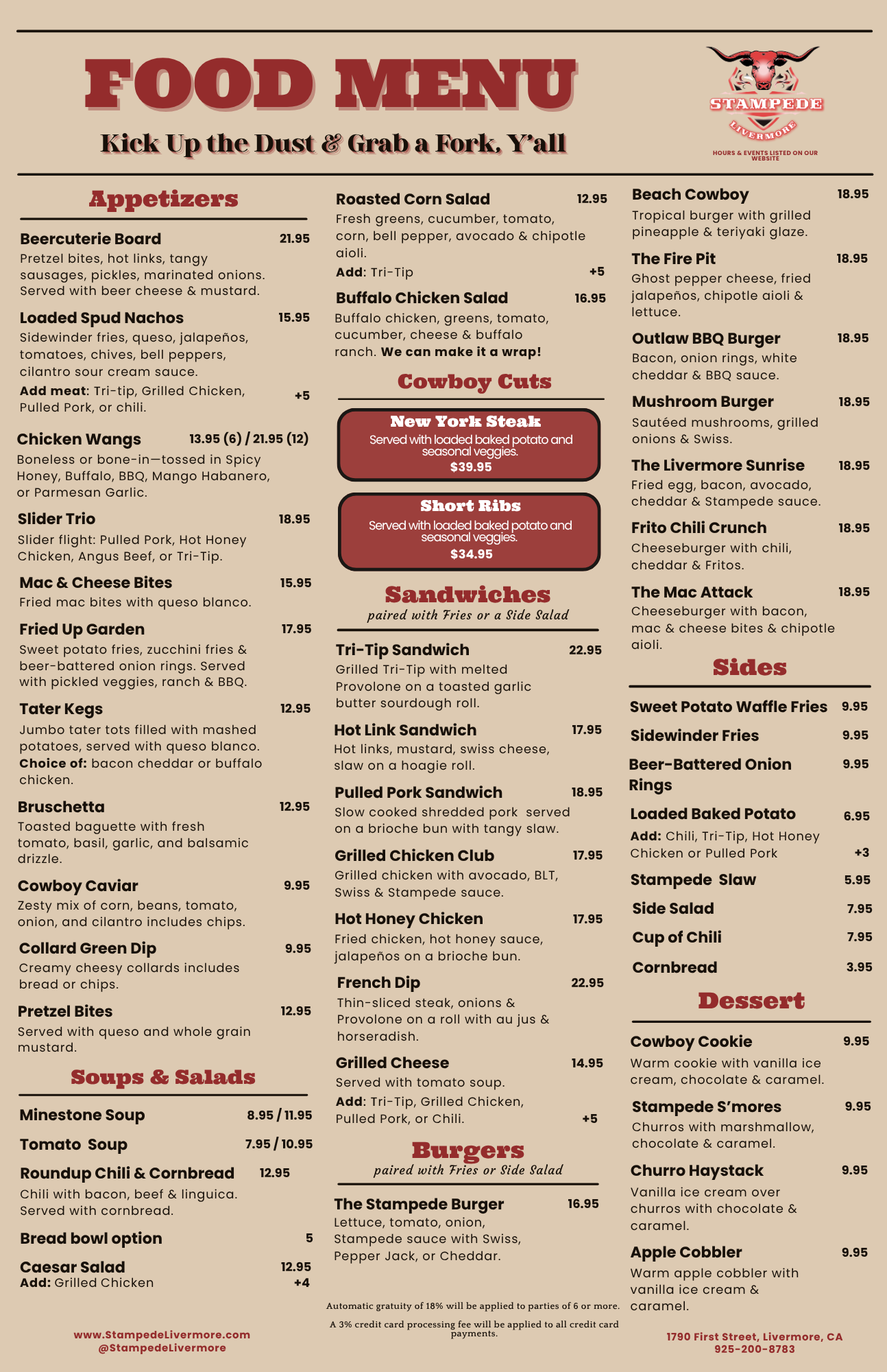 We set out to create more than a bar, we built a gathering place. A spot where friends meet, families feel welcome, and strangers become part of the crew. With good food, cold drinks, and live music that gets boots moving, every night at Stampede is a celebration of community and country spirit.